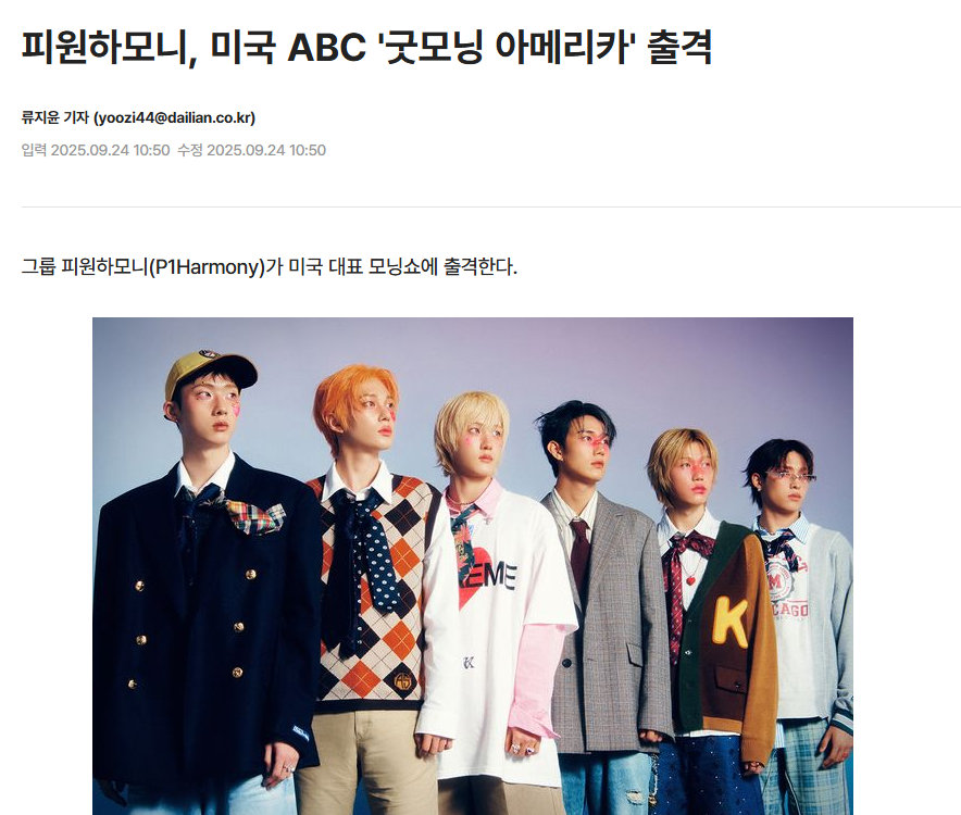中國藝人網訊 www 11job com 據媒體報道,P1Harmony 將于當地時間24日出演美國ABC電視臺的《Good Morning America》。該節目是美 ...
