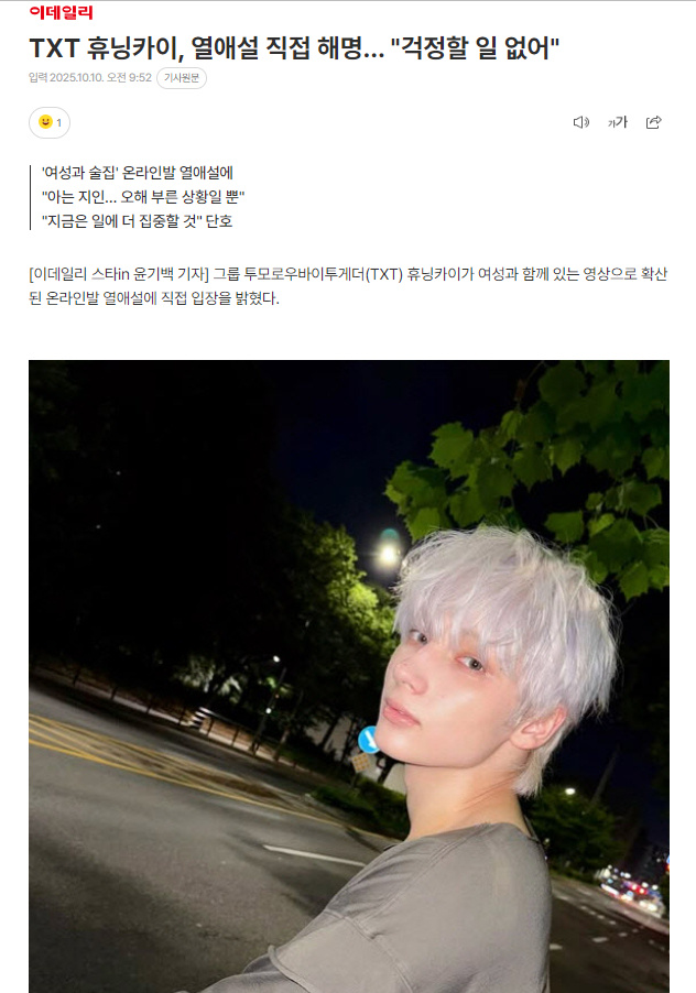 與神秘女生喝酒到深夜?TXT休寧凱親自解釋戀愛傳聞“不用擔心”