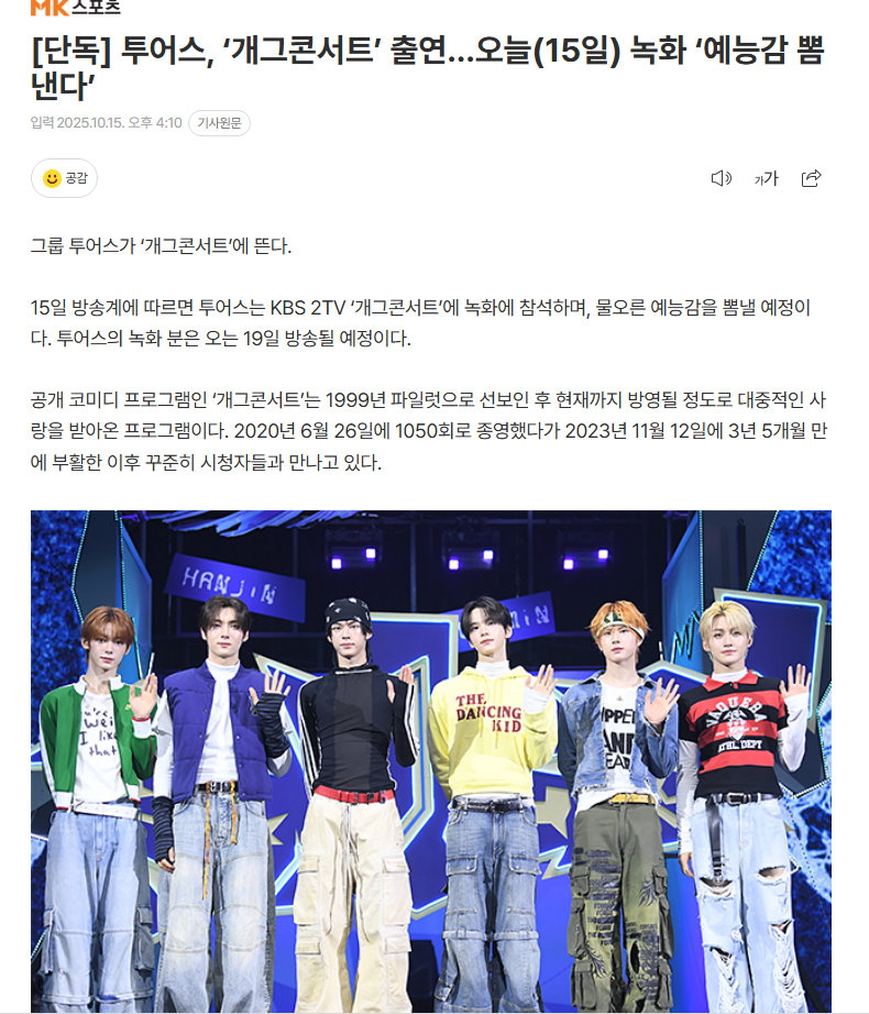 中國藝人網訊 www 11job com據韓媒15日消息,TWS已參與錄制KBS 2TV《Gag Concert》,將展現成熟的藝能感。TWS參與錄制的節目內容 ...