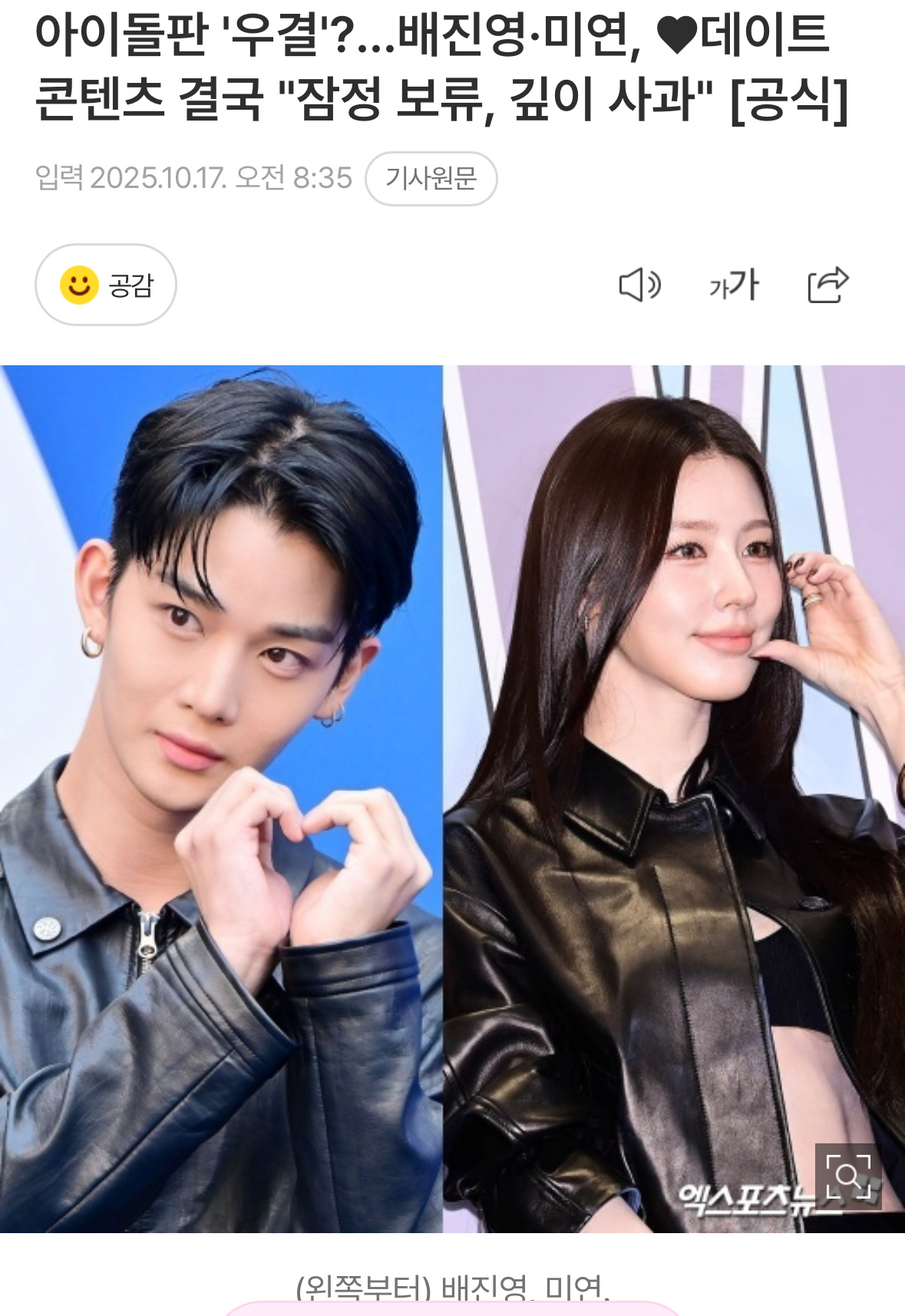裴珍映x美延約會綜藝最終暫停公開 節目組致歉